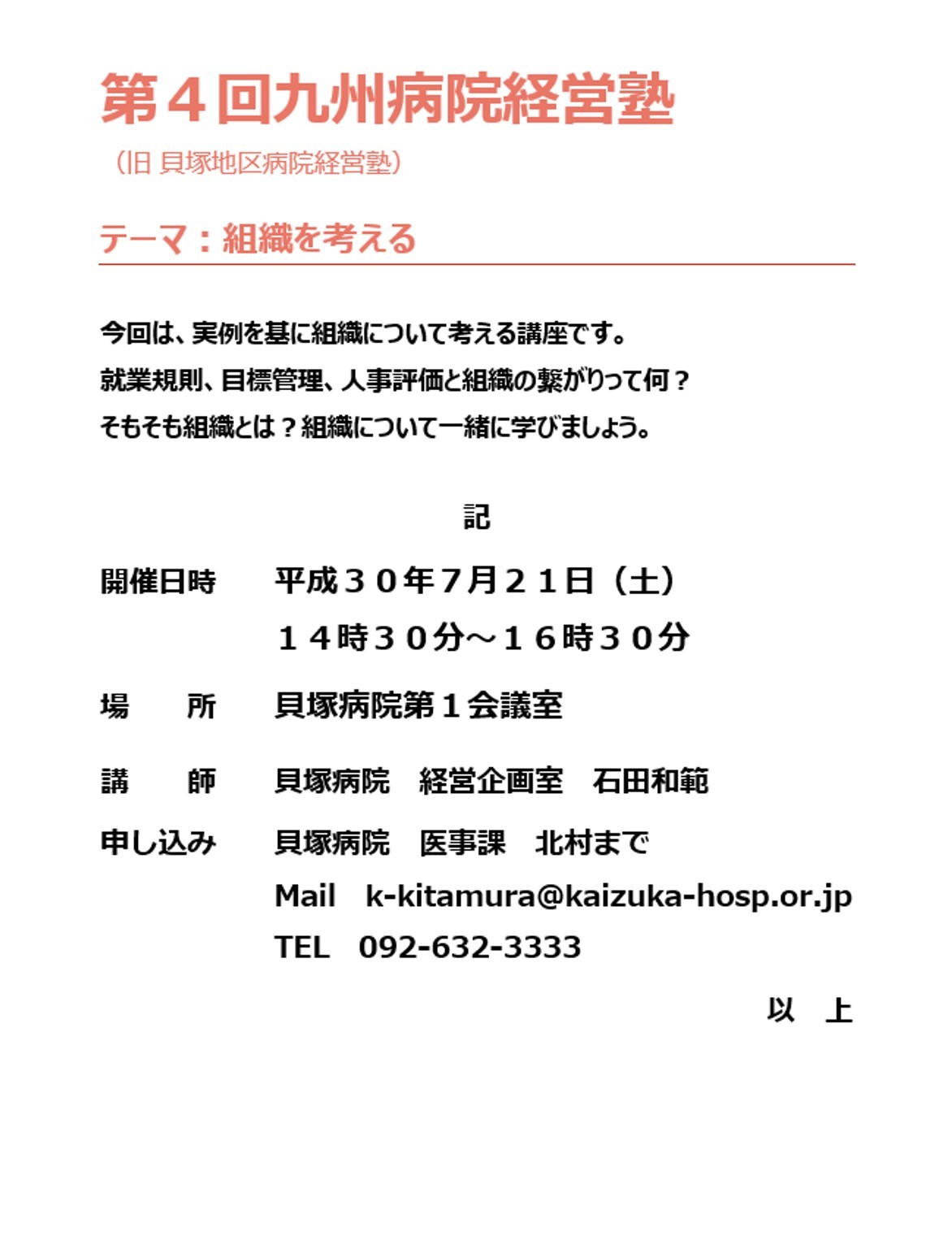 講 師:貝塚病院 経営企画室 石田和範